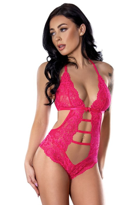 This snap crotch teddy set is a suggestive masterpiece. Let the stretch lace gallons flow, as the flirty scalloped edges radiate desire from your skin. With a plunge neckline and exposed midsection, every feature becomes an absolute highlight.