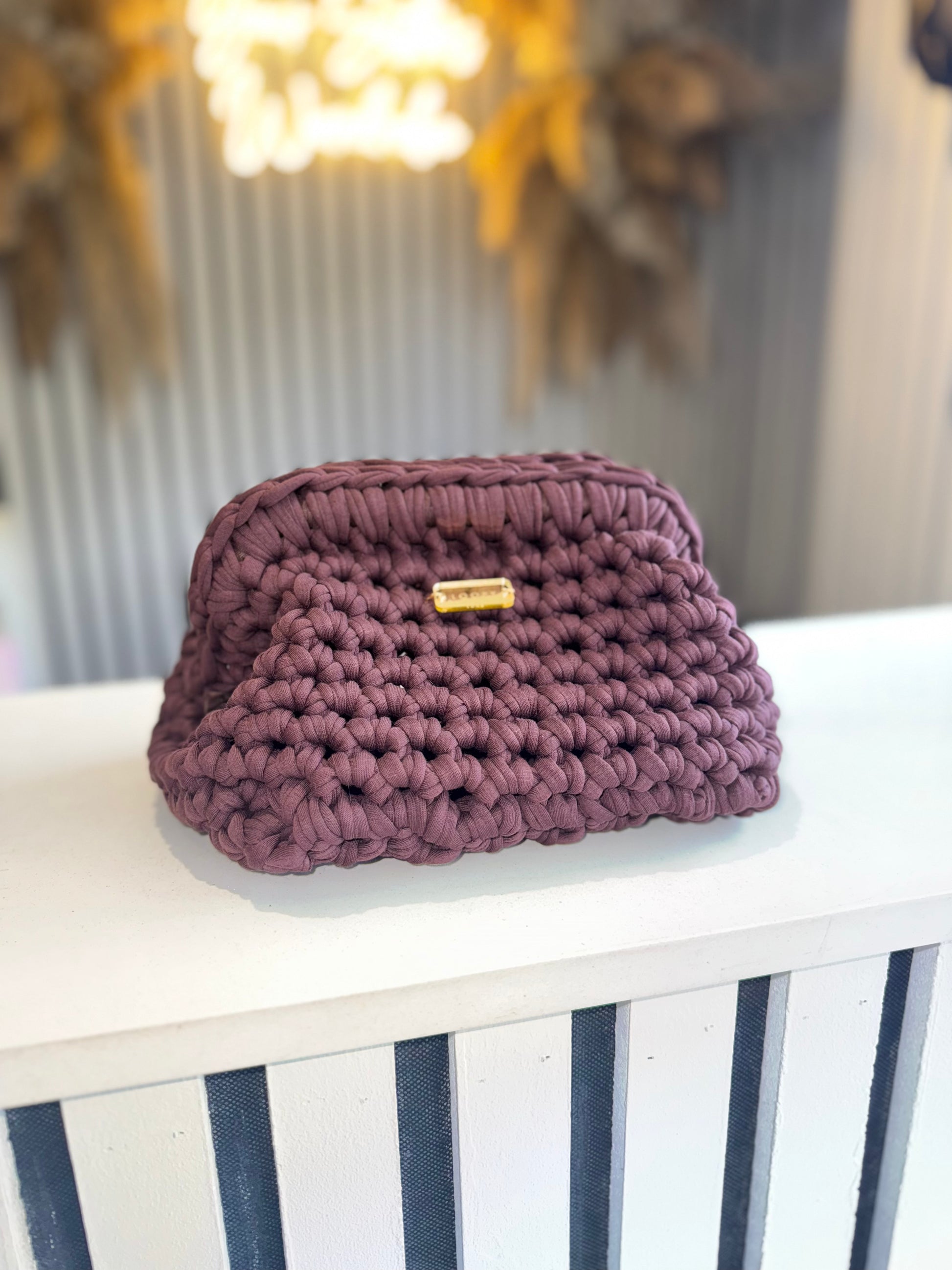 Handmade, woven clutch bag. All bags are handmade using recycled t-shirt material.